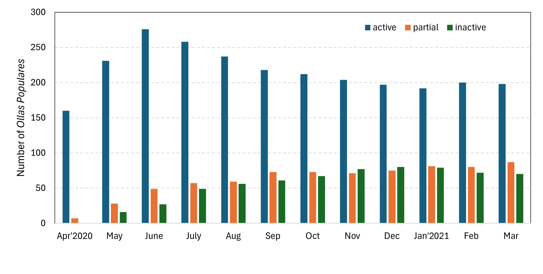 With the loosening of mobility restrictions and a return to semi-normal conditions for much of the population by 2021, many ollas closed due to a lack of donated food and volunteer resources, despite the fact that the need for food assistance continued to be high (Solidaridad.Uy, 2022) (Figure 5).