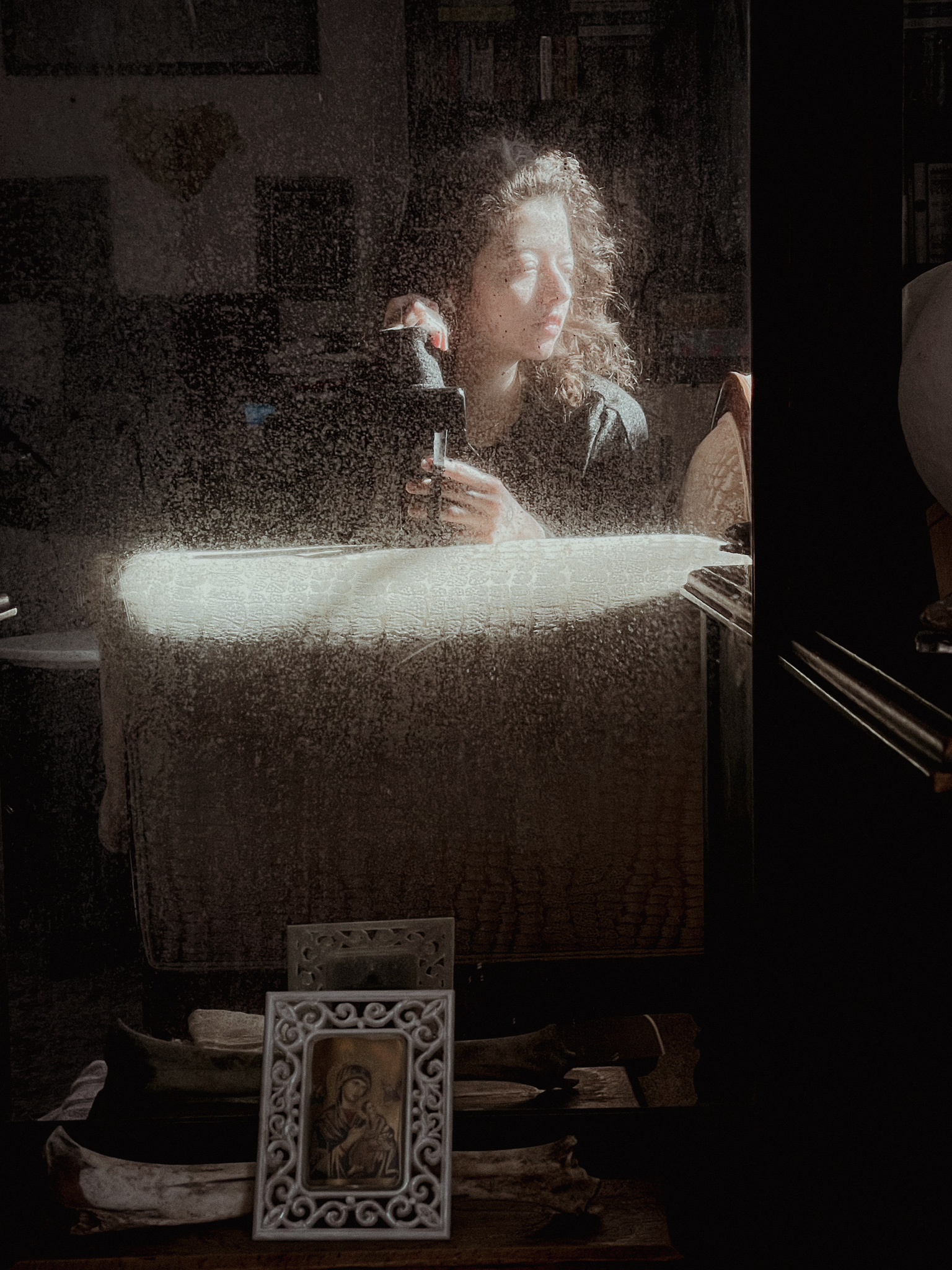 I want more. I want more. I want more. I want to maintain the subject, salvage her, for as long as I can. I want to tell her story from where she currently is, I want to seek, and I want to reflect. I sit in front of silver mirrors, eyeing the fragments in the tableau, and know with a profound assurance that I want to exist more than I ever have.