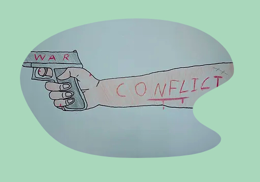 Furthermore, some students addressed the hunger for human rights. They approached this question from an intersectional approach to hunger dynamics and food inequality, linking these problems to certain populations that suffer compounded challenges and marginalization. Focusing on hunger caused by recent international conflicts, the group, XXTOBEJFXX discussed the impact of Russia’s invasion of Ukraine on the various regions of the globe. They composed a digital poster to represent the most impacted countries, deserted land, a sparsity of food, and people’s yearning for food (XXTOBEJFXX). The group Fun Jin Chee drew attention to the PRC’s inhumane COVID-19 pandemic prevention policies, particularly the Shanghai lockdown and the resultant famine. Their text and artworks convey a sharp criticism. Their works, albeit rudimentary in execution and craftsmanship, highlight the absurdity of the situation. One student drew “The Siege of Shanghai,” in which one single “dummy” dressed in a “I love China” t-shirt pulls and ingests grass from the ground. The student found irony in his observation: “Under the pressure of the political party, the mainland people still believe in their party and believe that the government will save them. At the last moment of despair, people who could not suppress their hunger began to pull grass from the ground, in sharp contrast to the determination to believe in the party” (Fun Jin Chee).