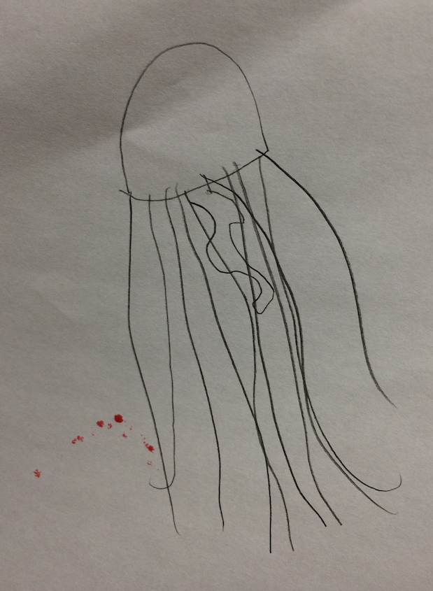 My son, an avid fan of David Attenborough, draws me examples; just to be clear, his attention to their forms and particularity inform my sense of jellyfishness.