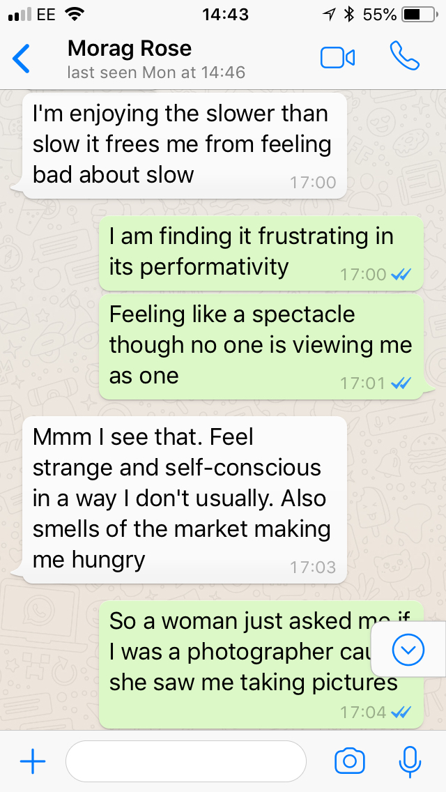 I realise my field report sounds rather gloomy but actually I rather enjoyed the jolt from my own practice, although it made me feel more self-conscious and passive than my usual communal wanders.
