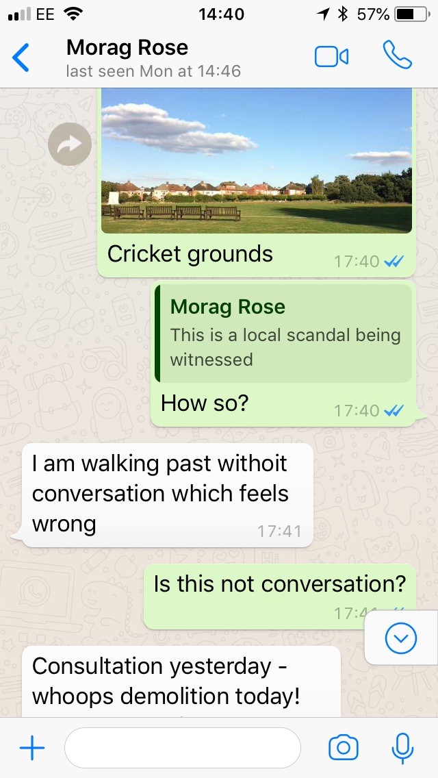Walking is a way to bring our attention to these things, to help us identify what lacks, to explore the ‘archaeology of the familiar and forgotten’. But this takes time. Walking is a slow process. Community building and organising is a slow process. The developers know that and refuse provide any.