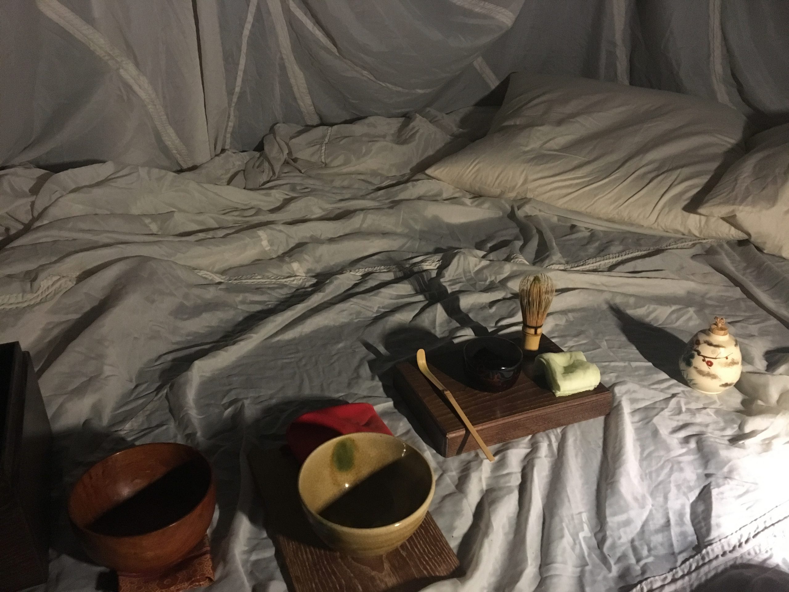 For the 2019 Performance Studies international conference at the University of Calgary in Alberta, Canada, I presented a paper on Japanese “tea ceremony” in a traditional panel format along with colleagues, and I also participated in the “Theme Park” installation, serving tea to one or two guests at a time, using a portable chabako “tea box” and modified utensils, tucked into a parachute tented in a corner of the room. Although I have long intended to write my second academic monograph on the Way of Tea in a performance studies frame, the process of presenting my research and knowledge of tea in these two separate formats, which we could articulate as “theory” and “practice,” raised significant concerns for me in terms of the adequacy of either format to accurately, appropriately, or precisely convey incisive scholarly analysis of Tea practice. My ongoing attempts to translate more than twenty years of Japanese Tea practice on three continents into academic performance studies discourse, in some sense, have highlighted the insufficiencies and contingencies of both theory and practice. In other words, in frustration with the shortcomings of description and analysis I perceived in my own academic paper and presentation, I found myself declaring to an awful lot of people in Calgary that I wouldn’t present on Tea in academic settings anymore. However, as a scholar with a vested interest in failure and a faith in its potentiality to reveal important interventions, even revolutions, in thought, now I’m enticed to revisit my Calgary failures with an eye to figure out what those failures may have to teach regarding limits and possibly new methods of cross-cultural knowledge formation and dissemination.