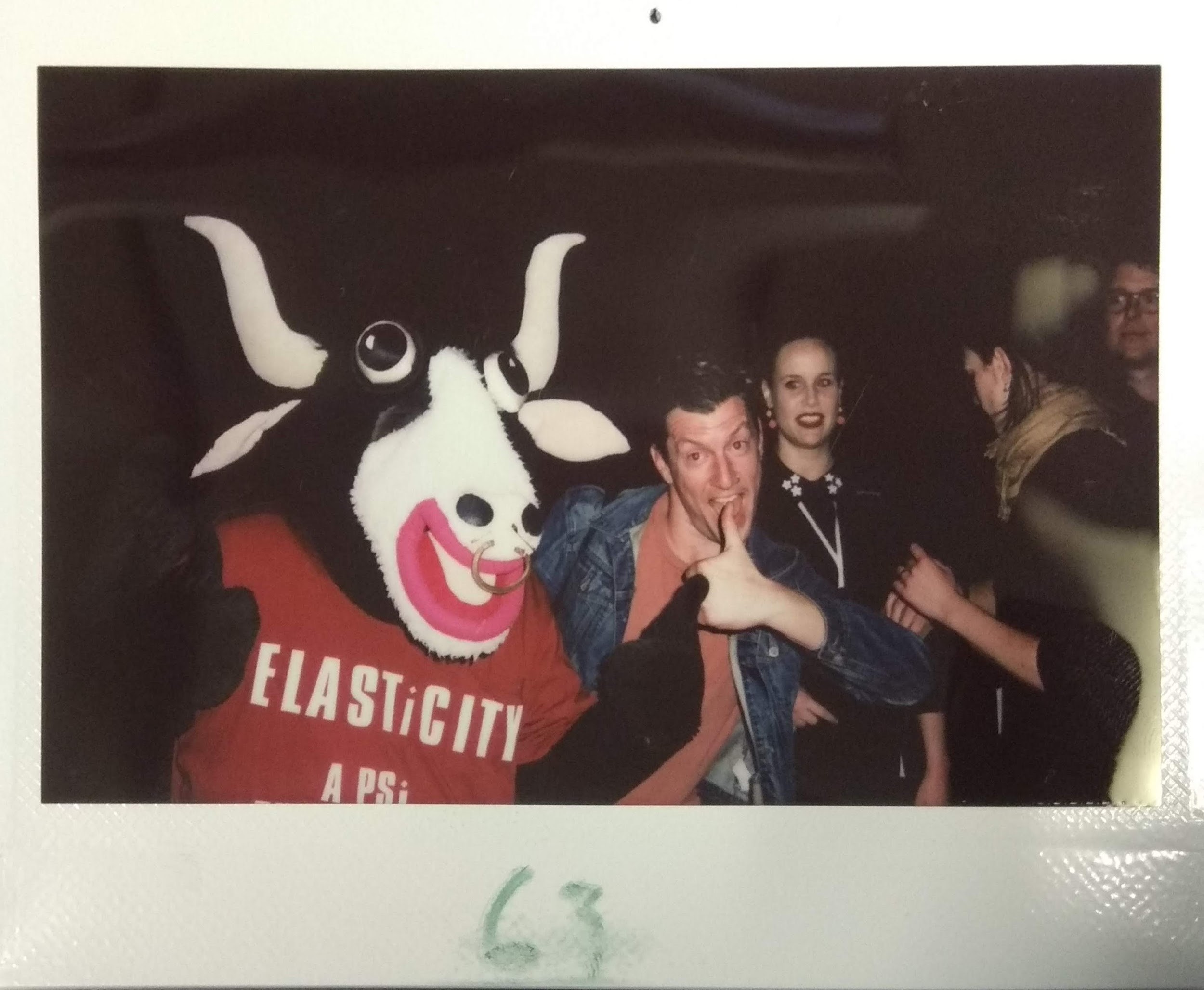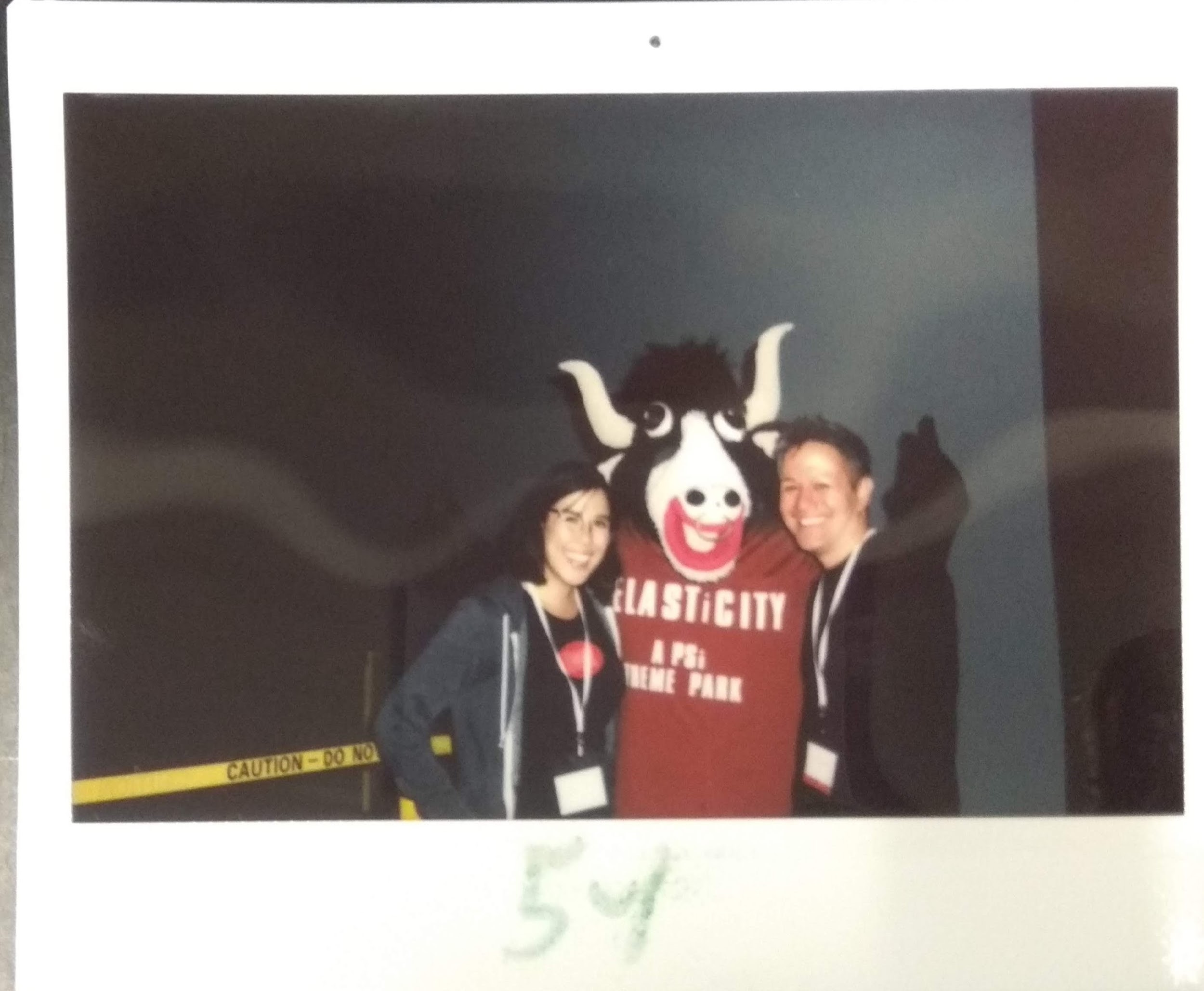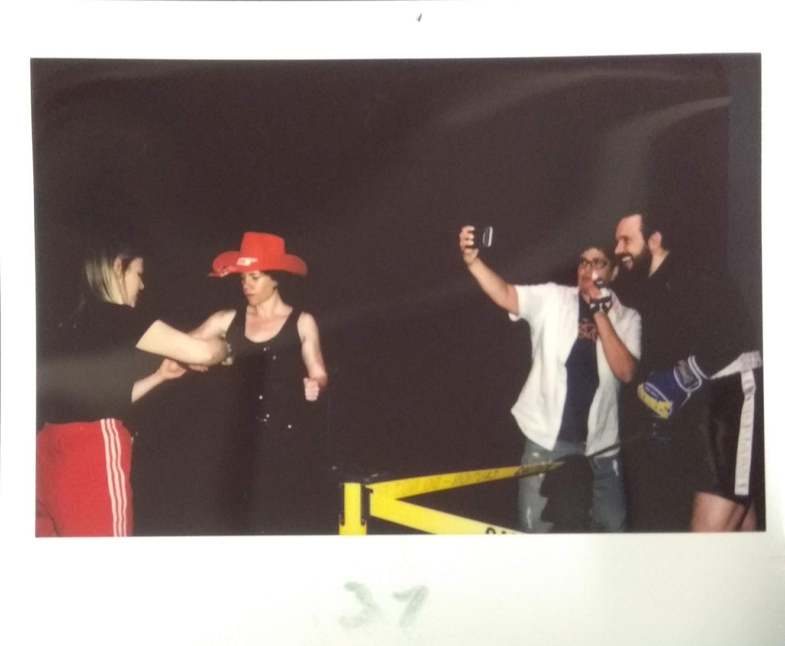 You enter ElastiCity on a recommendation from a colleague, or maybe you find yourself lost in the haze of an academic conference and stumble into the room by mistake. Perhaps you encounter one of Petra Kuppers’ “disability rides” out in the world, or you are drawn in by our bull mascot. In any case, you enter the park and its sights and sounds. Soundscapes collide and complement one another as our announcer melodiously welcomes you to “YOUR park,” and you hear the ghosts of prior guests repeated oh-so-subtly through Colin Tucker’s live sound installations as you disperse among rides, games, and experiences. Perhaps you participate in a tea ceremony with Michelle Liu Carriger in a diaphanous tent, or get a fortune reading from the PSi Futurists in the Future Telling booth, engage Simo Kellokumpu’s movement and media installation, play Kathryn Blair’s game to learn to be an algorithm, get your photo taken old-school-style by the roaming photographer, or perform some unusual labour for an as-yet-unknown future artistic purpose. And, of course, you can’t miss ElastiCity’s “weenie”[1]: a boxing ring open to all comers, hosted by scholars and boxers Sarah Crews and Solomon Lennox. On your journey into wonder, you make a mental note to get a photo souvenir of your day and, of course, exit through the cashless Gift Shop™, where gifts are purchased with gifts.