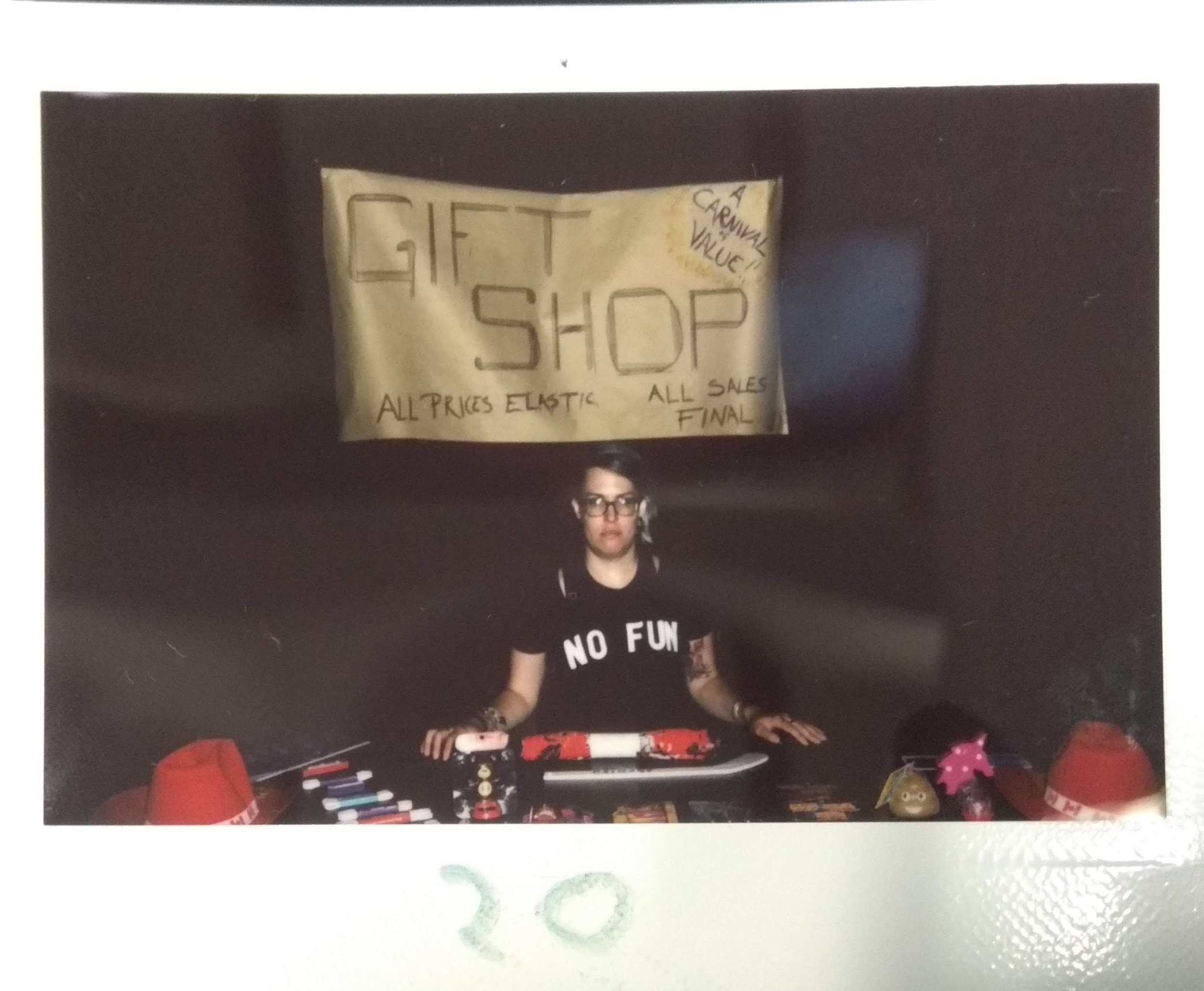 ElastiCity is already leaving our group with many leftover objects, found and bought for use in the park and now just an odd assemblage of junk. So we take them with us as souvenirs. The theme park souvenir is a unique bridge between realities, a direct conduit to the not-space and not-time of the theme park. This is one of the most direct connections between theme parks and theatrical practice. Several lives ago I was a props carpenter, a position where the majority of one’s time is spent shopping for ordinary objects and tweaking them to fit into another reality. The souvenir also intersects with a critical tourism studies vehicle, the gift shop. In ElastiCity, our Gift ShopTM was an afterthought driven by an excess of props, a place of gifts without commerce, branding, or direction. It suggests the gift in its wretched form of exchange: Barbara Browning notes the word gift in German means “poison,” and that the ecstasy of the gift is that it is always insufficient (see Browning 2017). A Carnival of Value, indeed.
