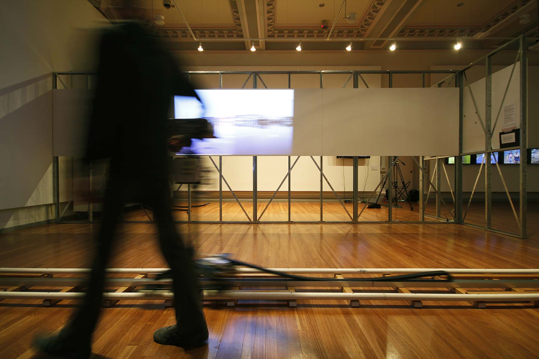 [1] PAN & ZOOM was installed in the Performing Mobilities curated exhibition at RMIT Gallery, Melbourne, Australia, 24 September-26 October 2015. PAN was shown at the Fluid States North event in Copenhagen, Denmark, in June 2015; and re-created in an alternative installed configuration for the Performing Climates conference in Melbourne, Australia, in June 2016.