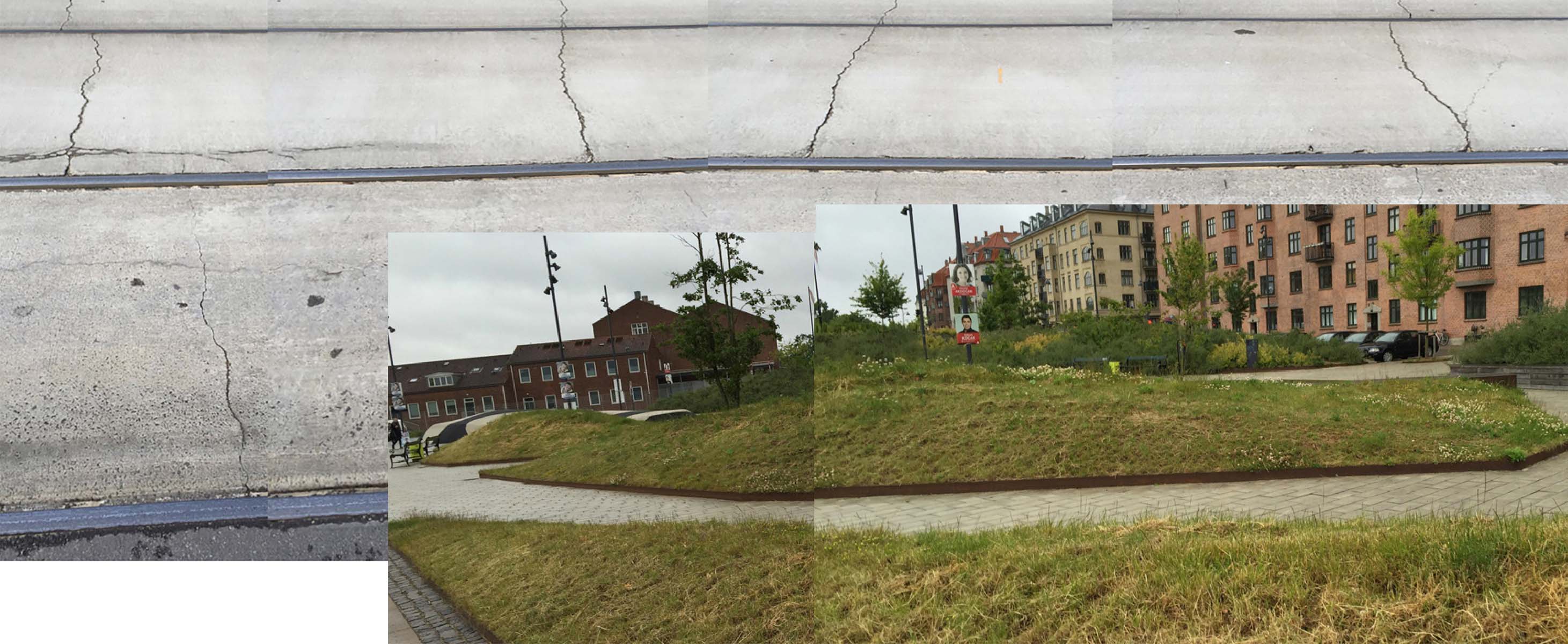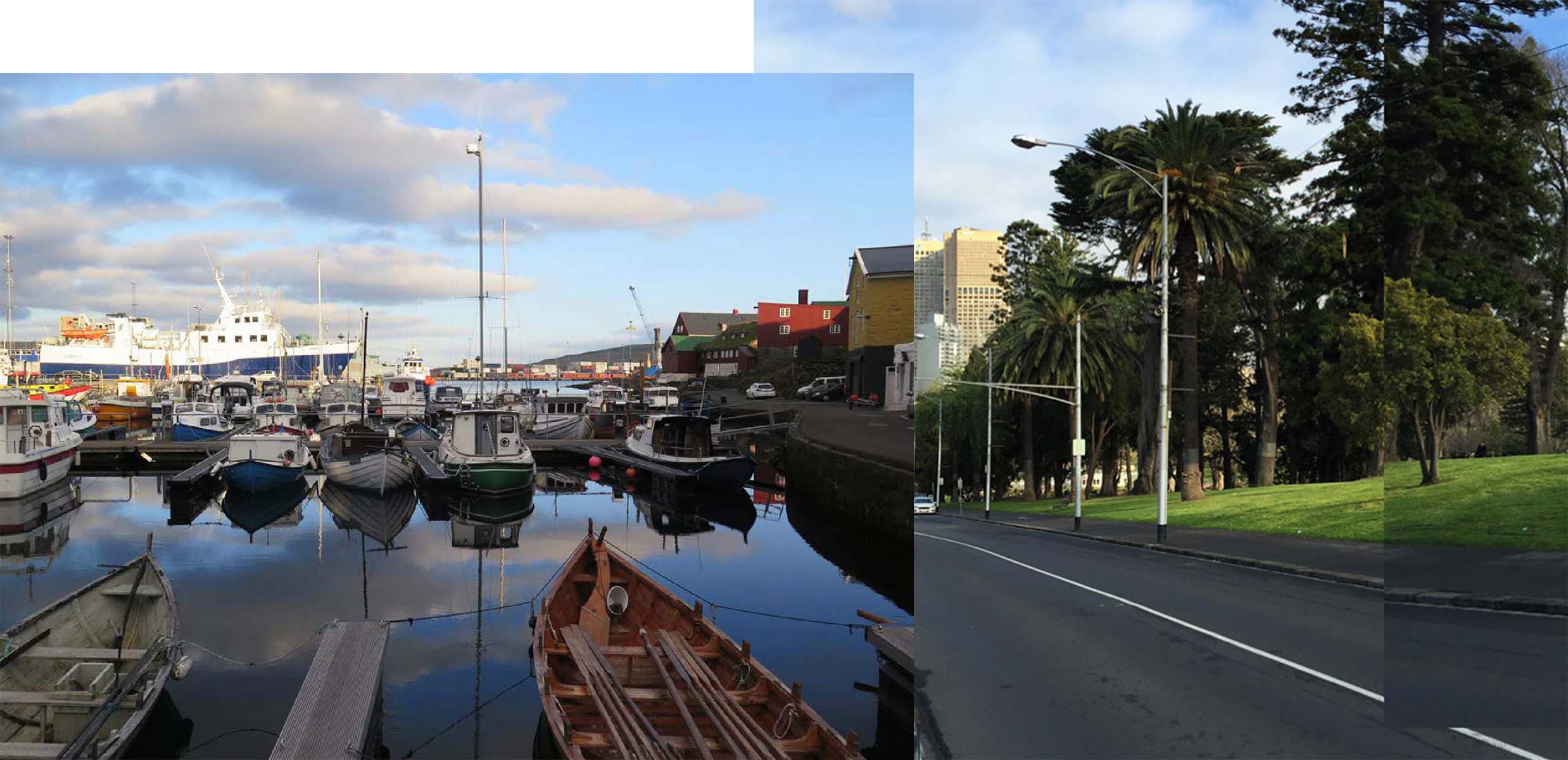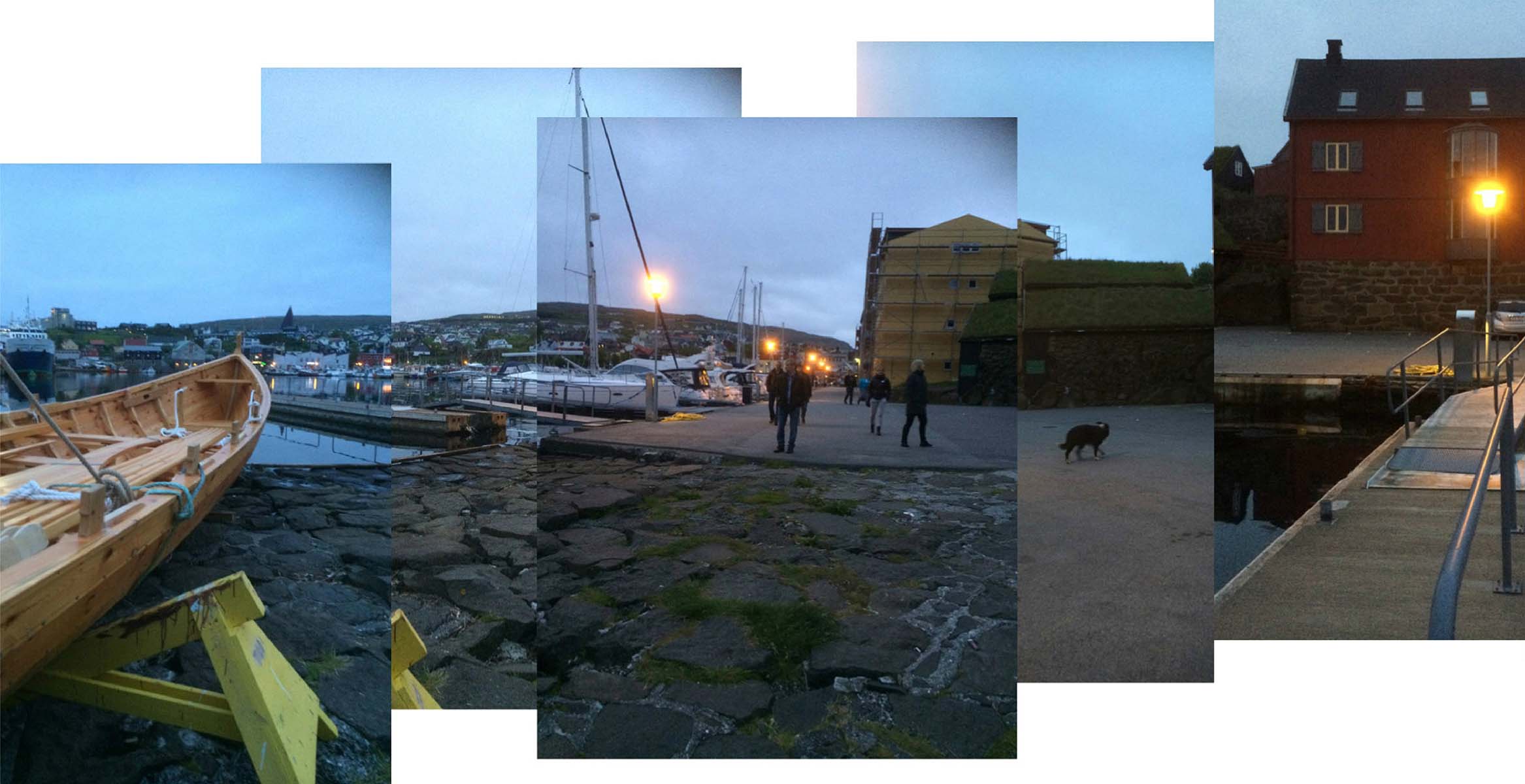 The majority of images, video, and audio that were collected in Tórshavn also had a similar grounding to local landscape aesthetics: sequences of dogs walking along the dockside, the construction of wooden boats in the harbor, cracks in the footpaths, the sound of the waves, views of the airport and streetscapes (see Figures 3, 7, and 8). Although there were images of the vast landscapes, rolling hills, and dramatic cliff faces of the Faroe Islands, the majority of the panoramic content was a balance of the more urbanised and mundane views of the local area. In this way, the panoramas captured a resonance of the local in the Copenhagen and Tórshavn landscapes.
