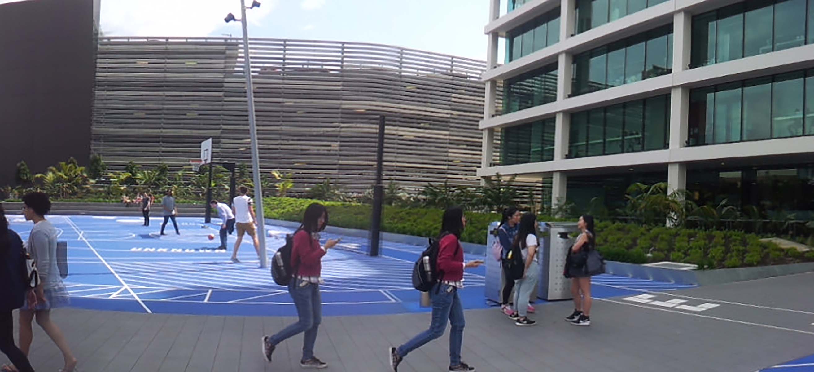 With mobile media practices saturating our daily explorations and activities, a contemporary panoramic aesthetic can be found in countless examples of marketing, gadgets, and social media platforms. These applications move individuals beyond their singular perspectives and extend bodies in almost prosthetic ways (Pazzini), as they document themselves and surroundings. This increasing trend to capture oneself within the surrounding environment — in a wide angled, panoramic format — has perpetuated a panoramic aesthetic that has bled into everyday mobile media practices. Our artwork has picked up on these tendencies, examining how the panoramic aesthetic might be indicative of a “panoramic practice.” These practices can re-arrange, re-position, and even unsettle and assemble new and playful uses of space, time, and movement, and feed individual movements into assemblages of collective actions (see Figures 15 and 16).