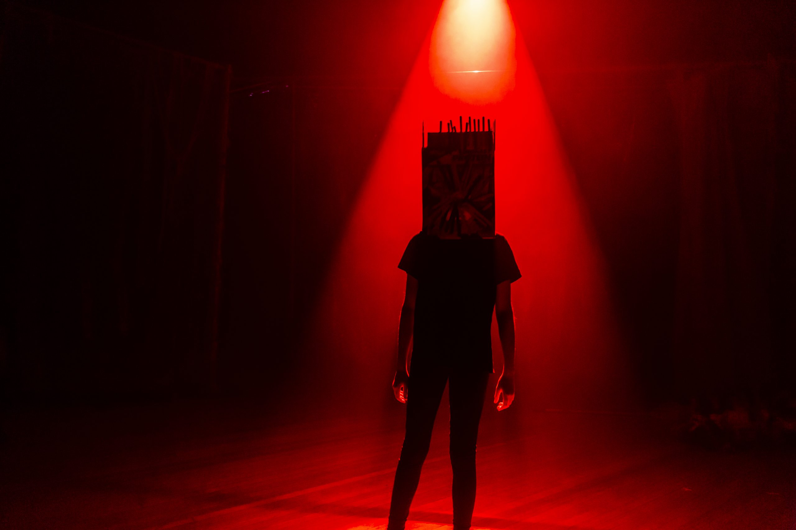 The workshops for The Cabin! ran throughout 2017 and 2018, exploring with the children a range of material connected to urban myths and horror stories. Gradually, a narrative, some characters, and some clear design directives emerged, which became the basis for a horror-comedy show known as The Cabin! JOF describes a “huge, rich tapestry of ideas” (Watts) that came from this development. The material was then brought into a process with the show’s creative team to develop the dramaturgical structure that would frame the ideas. Essentially, the structure of “the children’s variety show,” hosted by “the worst theatre director ever” emerged as a framework to showcase the visual design, characters, stories, sounds, and images the children had developed through the workshop process. The ideas and writing from the children were sometimes executed and realised by professional artists (for example, the ‘Messy Monster’ who featured in the show was a story and drawing by a ten-year-old in the UK and executed as a three-metre-high Bunraku-style puppet by professional designers and operated by the child performers). Oftentimes material went into the show exactly in its original form; for example, the two-page monologue executed by the Secretary character played by adult performer Emily Tomlins toward the end of the show.