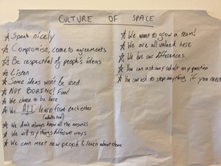 The following section details one of the specific strategies I used as part of ‘holding space.’ This strategy was designed to foster an environment that worked to subvert dominant power relations between adults and children, connecting the rights-based approach I was applying to other human rights frameworks and contexts.