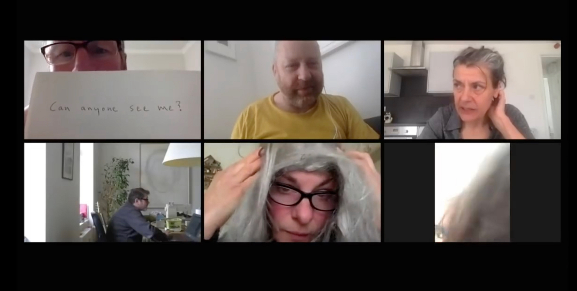 End Meeting for All. Performed by Forced Entertainment. Co-produced by HAU Hebbel am Ufer (Berlin), Künstlerhaus Mousonturm (Frankfurt a.M.), PACT Zollverein (Essen). Live streamed on Zoom, April 2020.