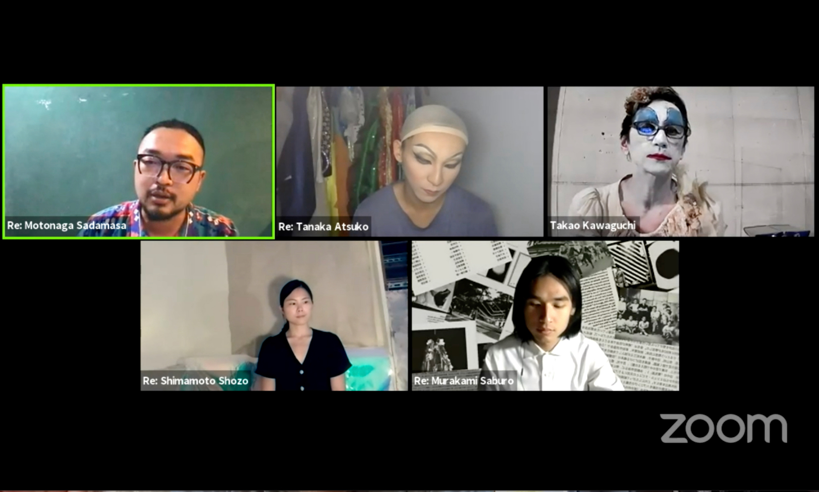 Is this Gutai? is a ninety-minute Zoom performance and lecture curated by Taiwanese artist River Lin and broadcast on May 28, 2021 on the Tokyo Real Underground (TRU) website as part of the Tokyo Tokyo Festival Special 13, “The Future is Art.” Gutai? defies easy categorization: it is part dance party, part drag show, part historical reenactment, and part lecture about Gutai — an experimental artist collective active in postwar Japan. Gutai? also included a conversation between River Lin and TRU’s artistic director Takao Kawaguchi, and video documentation of Dancing with Gutai Art Manifesto 1956, presented in 2020 by C-Lab (Contemporary Culture Lab Taiwan).
